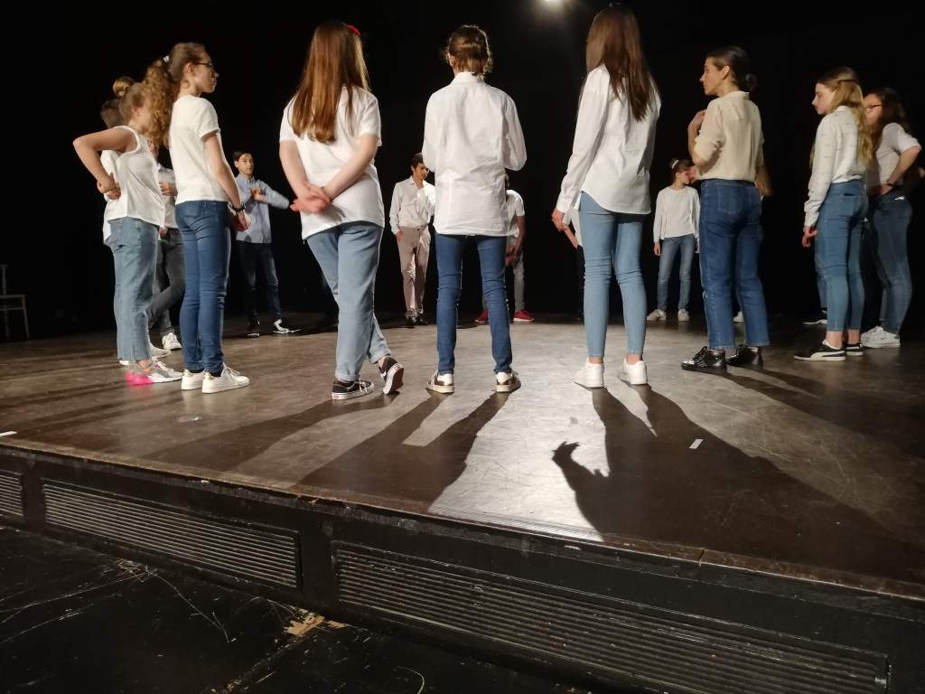 Nous pratiquons des jeux pour délier le corps, développer la respiration, placer la voix et exercer la diction. Ils apprennent également le vocabulaire du théâtre.